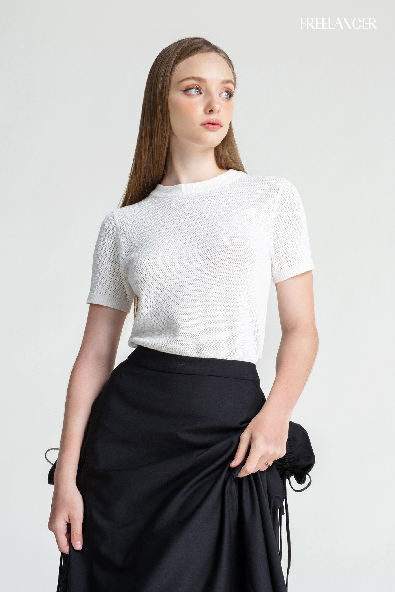 - Gam màu trắng trung tính, giúp nàng dễ dàng mix cùng quần jeans, chân váy, quần âu – từ đi làm đến đi chơi đều cuốn hút.