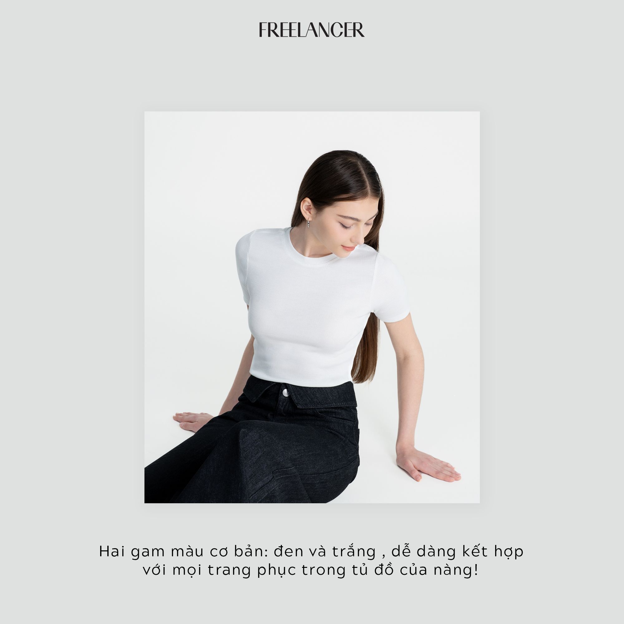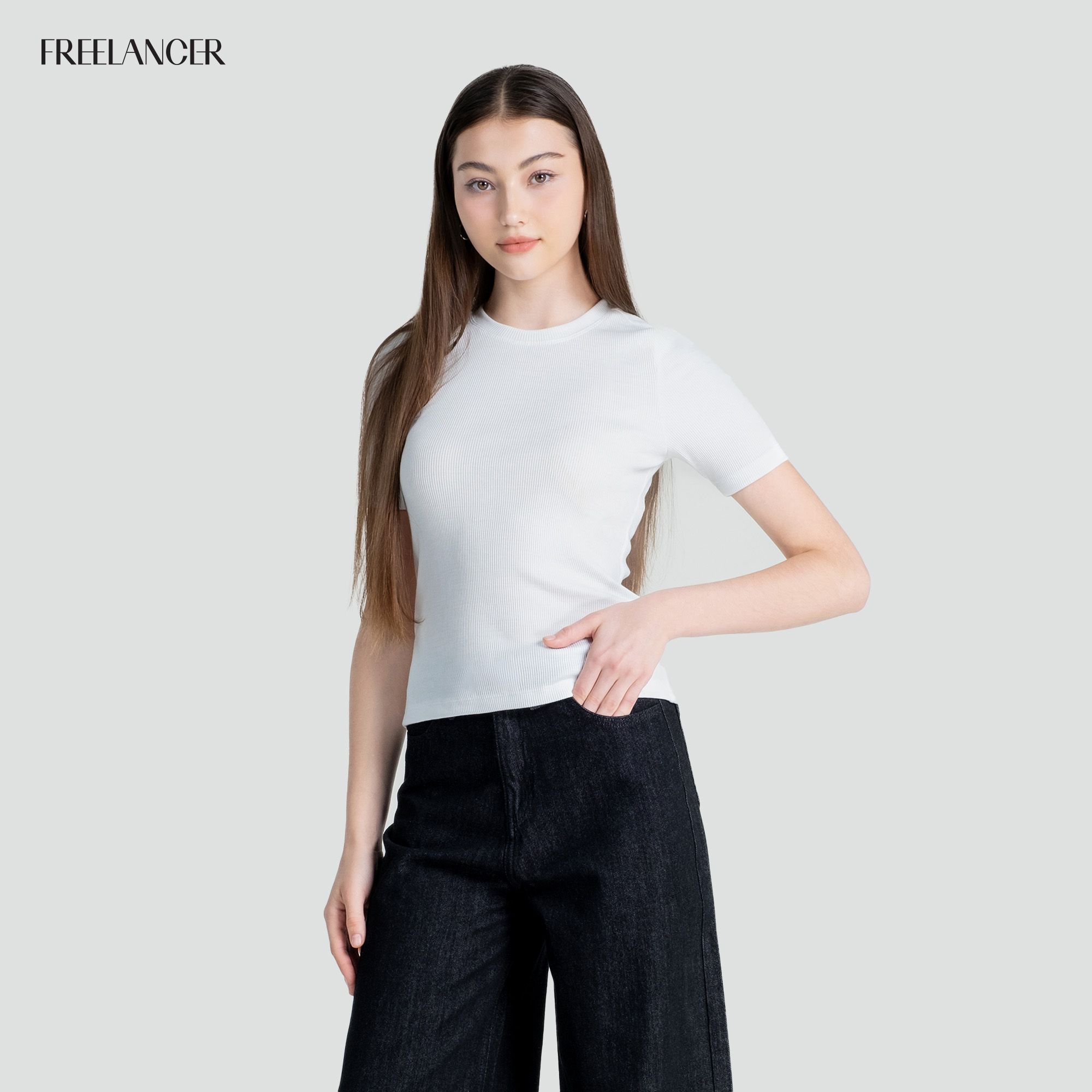 Áo thun basic thường bị gắn mác "nhàm chán", nhưng phiên bản của Freelancer thì khác. Với form ôm nhẹ, chất thun co giãn mịn mát, chiếc áo vừa thoải mái vừa giúp tôn dáng – cho nàng vẻ ngoài chỉn chu mà vẫn effortless.