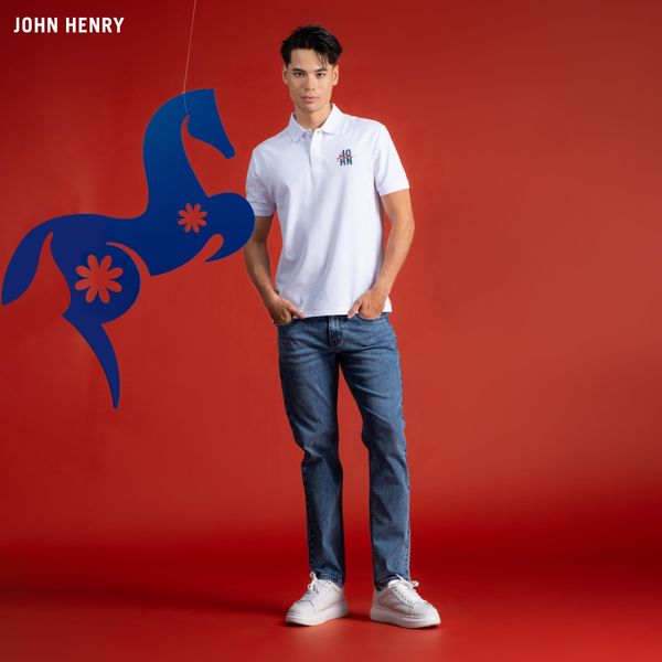 Sự kết hợp giữa áo polo trắng và jeans xanh luôn được xem là công thức an toàn nhưng hiệu quả trong thời trang nam. Trong dịp Tết, bản phối này càng phát huy ưu điểm nhờ sự cân bằng giữa vẻ ngoài chỉn chu và cảm giác thoải mái khi mặc.