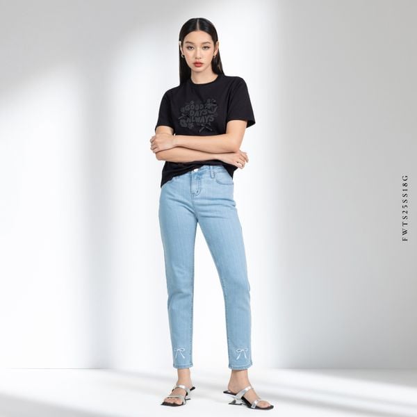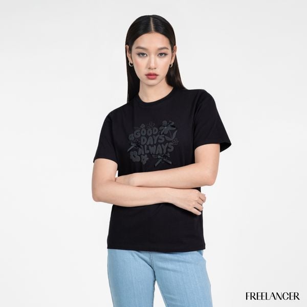 Thiết kế form vừa, chất liệu mềm thoải mái kết hợp họa tiết in nổi 3D cùng nơ mini đồng điệu, tạo điểm nhấn tinh tế mà vẫn giữ trọn nét cá tính. Dễ phối cùng quần jeans, chân váy hoặc short, chiếc t-shirt này mang đến vibe trẻ trung, tươi mới và hiện đại – đúng tinh thần FREELANCER girl.