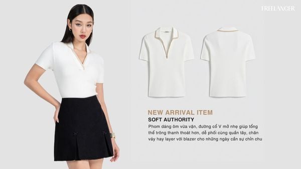 Áo thun cổ V có thể kết hợp linh hoạt cùng quần tây, chân váy hoặc layer với blazer cho những ngày cần sự chỉn chu. Đây là kiểu áo nàng có thể mặc đi làm, dạo phố hay sử dụng trong những lịch trình bận rộn mà vẫn giữ được phong thái tự tin.