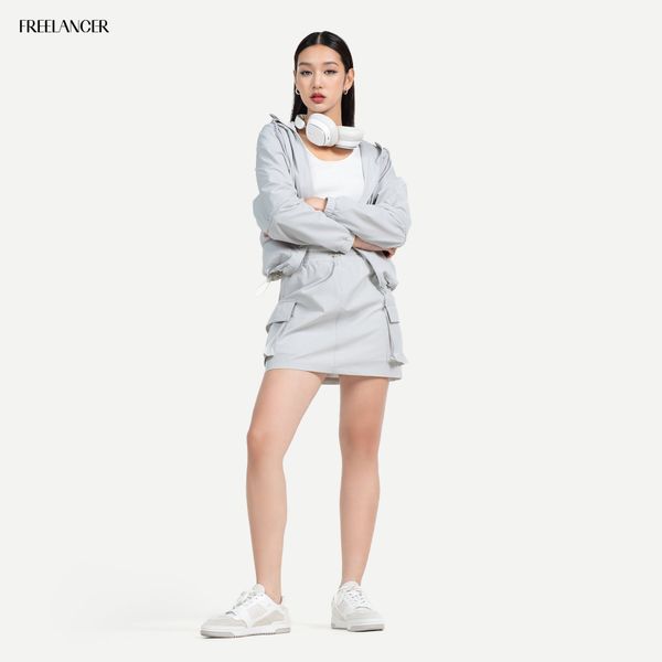 Set gồm áo khoác dáng ngắn kết hợp chân váy sporty, tạo tổng thể linh hoạt, phù hợp cho các hoạt động thường ngày như di chuyển, dạo phố, tập luyện nhẹ hoặc những buổi đi chơi cần sự thoải mái.