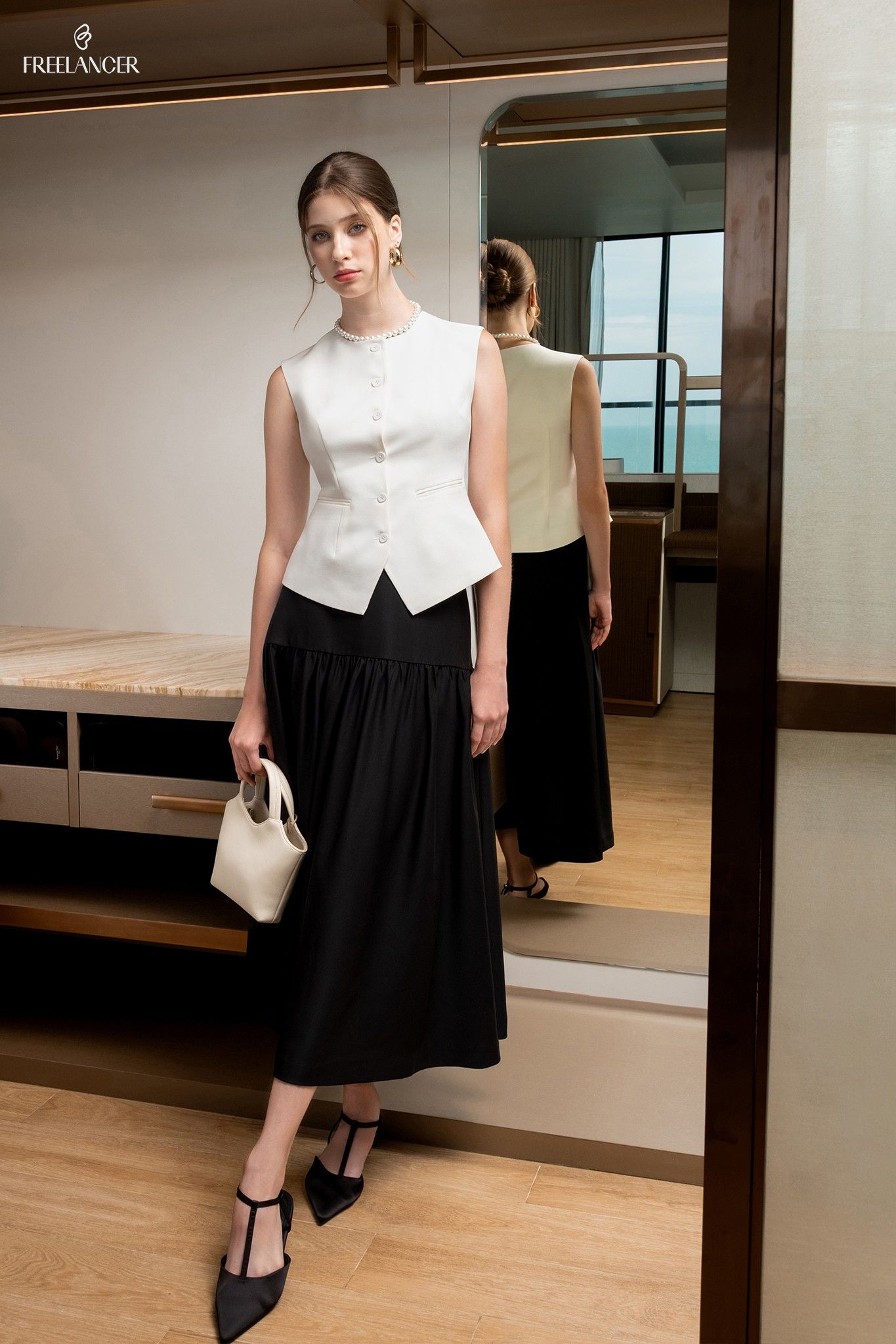 - Phom A-line rủ nhẹ, từng bước đi thêm phần uyển chuyển – thanh lịch nhưng không gò bó.